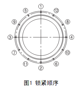 5、如圖1所示,固定螺栓的鎖緊由不完鎖緊到鎖緊分成3~4個(gè)階段,按對(duì)角線上的順序反復(fù)擰緊。在擰緊分割的內(nèi)環(huán)或外圈時(shí),將體型的外圈或內(nèi)環(huán)稍微轉(zhuǎn)動(dòng)些,就能修正內(nèi)外環(huán)與主體的偏離。